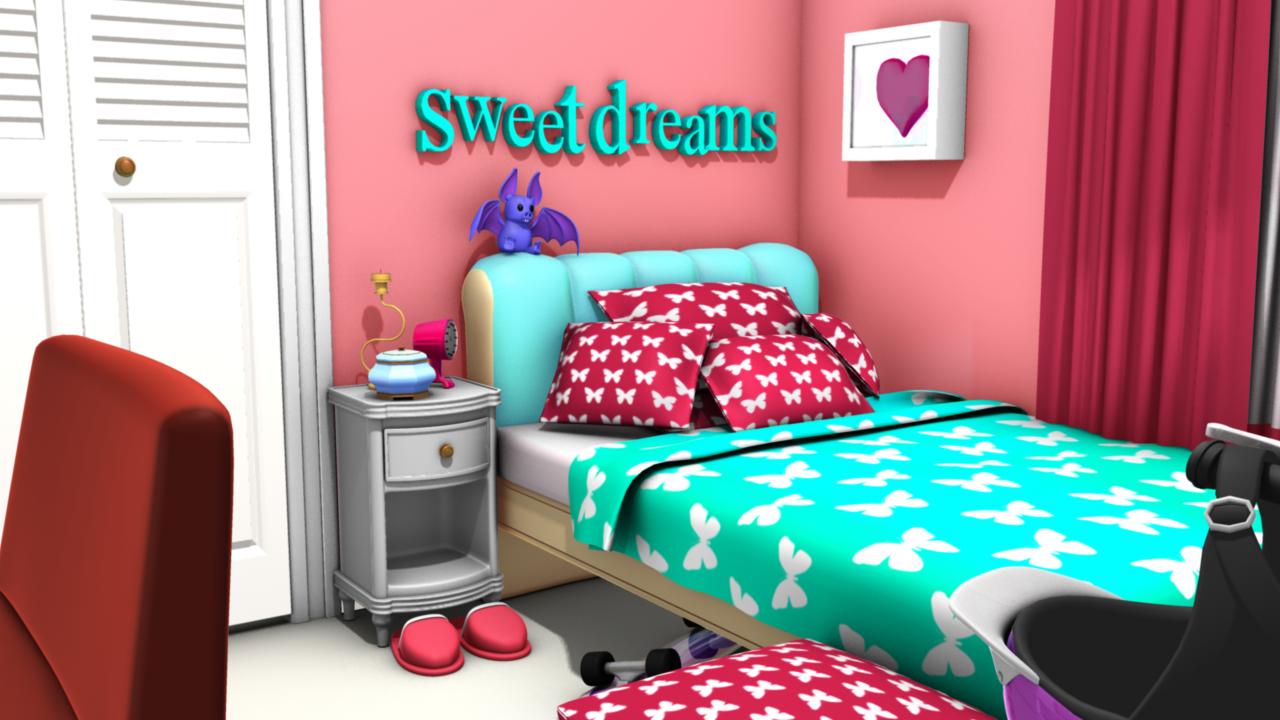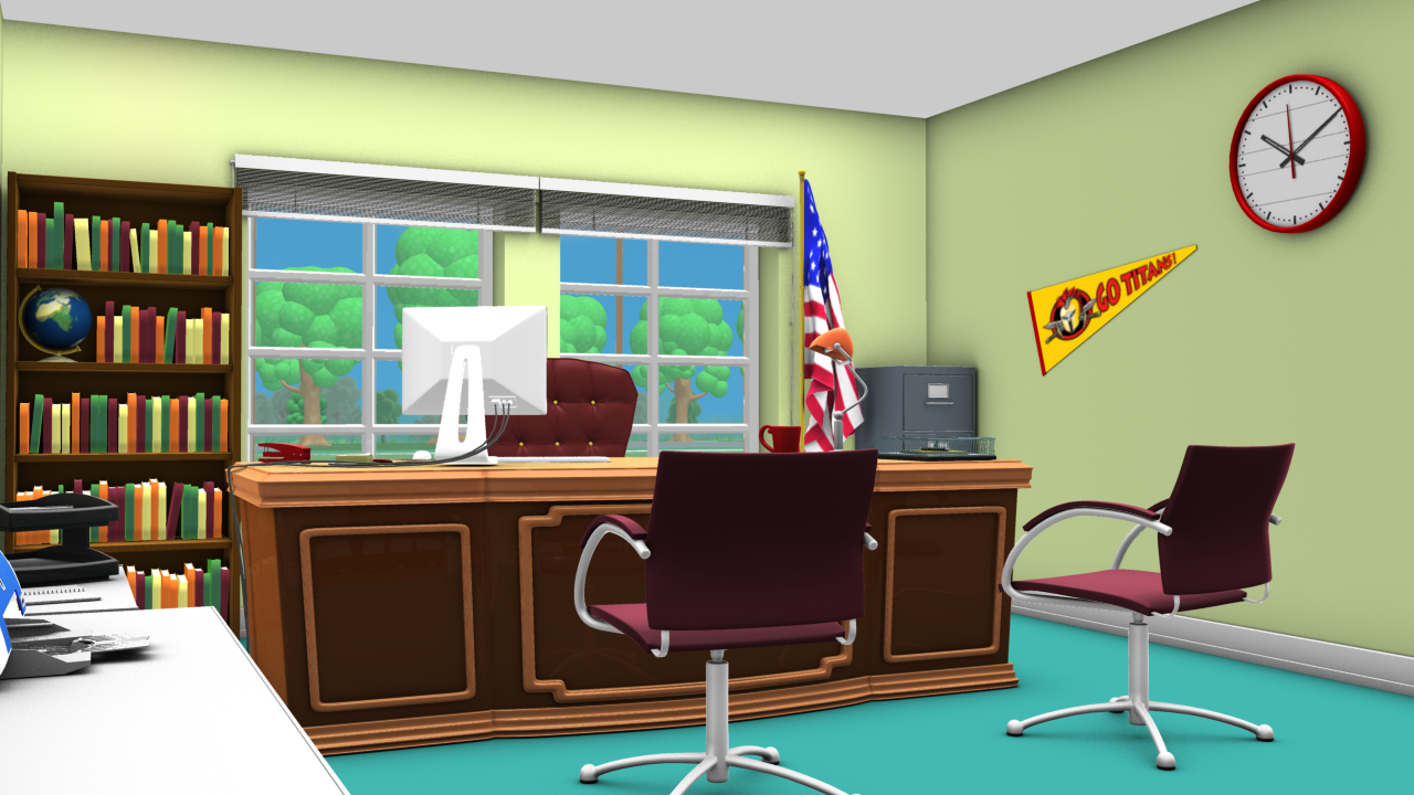 Below is a collection of images depicting some of the sets I designed and rendered while working for So! Animation. These sets were made using a combination of my own 3D modeling and texturing as well as pulling various items from our extensive 3D models database. For my own personal 3D models, visit the 3D Modeling page.